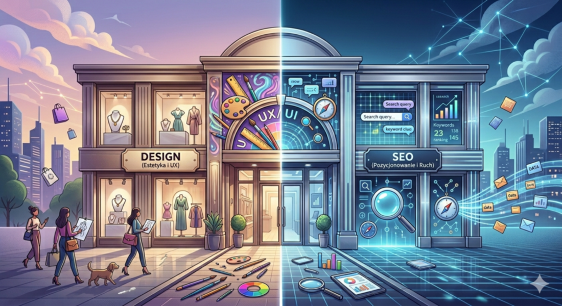 Wielu właścicieli e-biznesów staje przed dylematem: zainwestować w oszałamiający wygląd witryny, czy skupić się na tym, by była ona widoczna w wyszukiwarce? To pytanie często dzieli branżę na dwa obozy. Z jednej strony mamy projektantów graficznych, dla których liczy się estetyka i unikalność. Z drugiej – specjalistów od pozycjonowania, dla których najważniejszy jest suchy kod i słowa kluczowe.